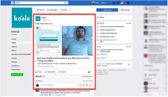 这一切都是因为他们找到了一种以创造性和有趣的方式传播有关他们产品信息的方法。Koala还在 Facebook上定期发布大量内容,保持粉丝的黏性。