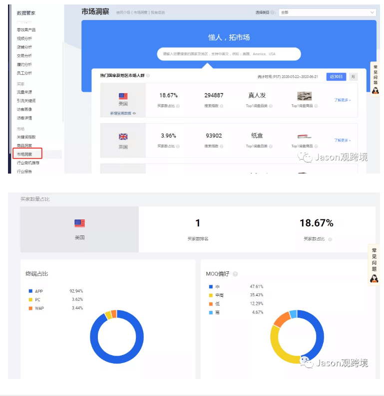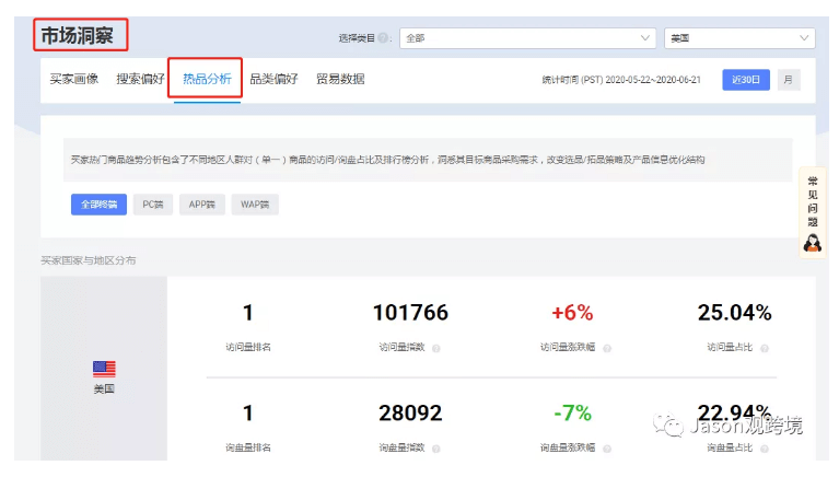 我们可以看到各国热门询盘商品,可以查看买家终端的询盘热品。