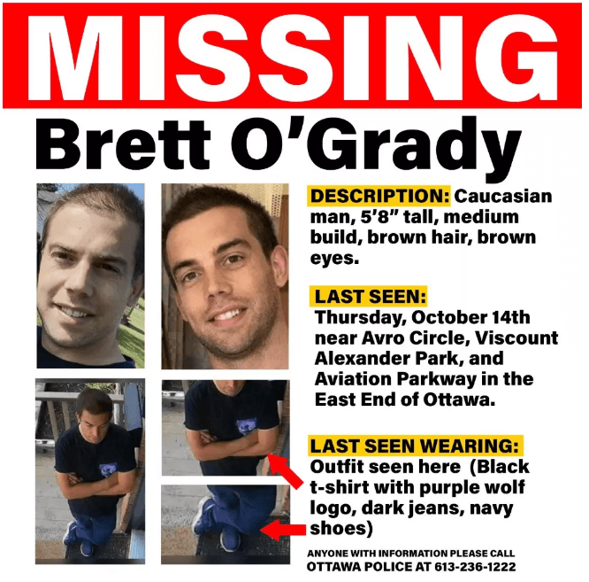 同时,Brett O’Grady的家人悬赏1万加币寻求他的消息。