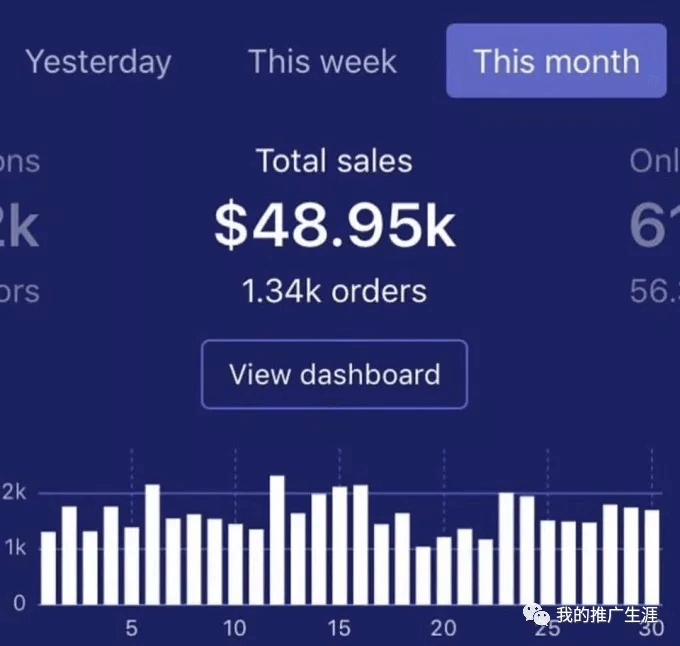 一个月之后,如下图,“我”跑出了4.89万美金的销售额,订单数是1.34k。