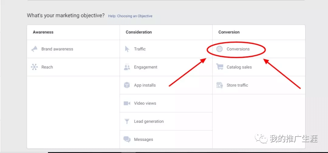 因为“我”急于出单,所以我选择了“转化”作为营销目标,