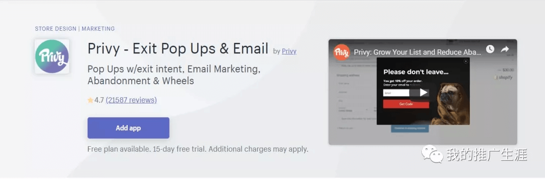 Privy,非常流行的弹窗插件,可以给顾客提供折扣代码来换去用户的电子邮箱。