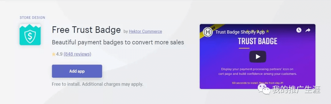 Free Trust Badge,免费的信任徽章,它可以显示在产品的下方,让顾客更加信任你的网站。
