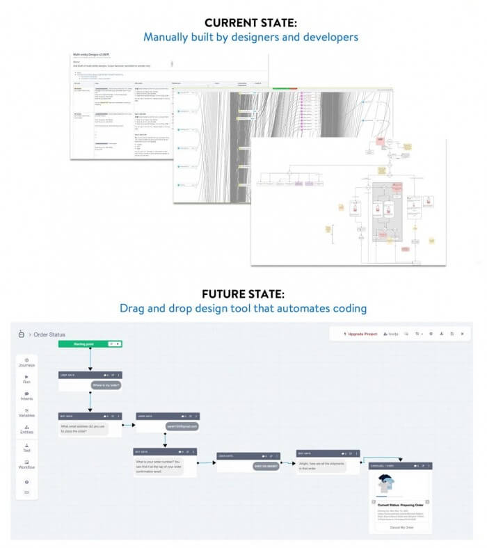 了解到,Botmock成立于2016年,其开发了一套用于设计、原型设计、测试和部署跨平台对话式应用程序的工具。此外,对于非开发人员正在使用Visio或LucidCharts等工具来创建他们的对话流。Botmock承诺提供更好的工具集,使团队能够避免设计中的盲点,从而能够建立起更好的整体对话体验。