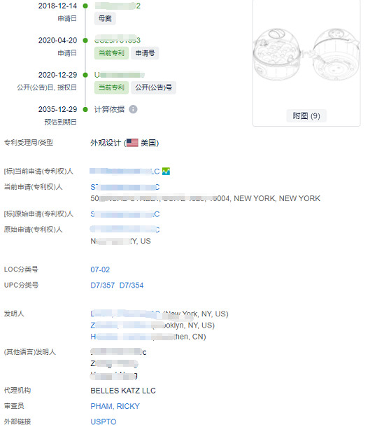从截图可以看出以上产品都是有对应的在先美国外观专利,目前均是在授权有效状态,由此可以看出,大部分的卖家还是有比较有前瞻性,会主动为自己的产品穿上一层“防弹衣”,既保护了自己的发明创造成果,同时也提高了自己在市场中占有的优势。