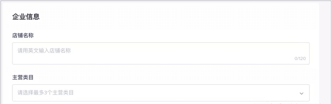 7. 给店铺取个名字,且名称是不可更改的,所以选择名称时要谨慎。(主营类目可以选择3个,后续销售过程中不限于3个类目)。
