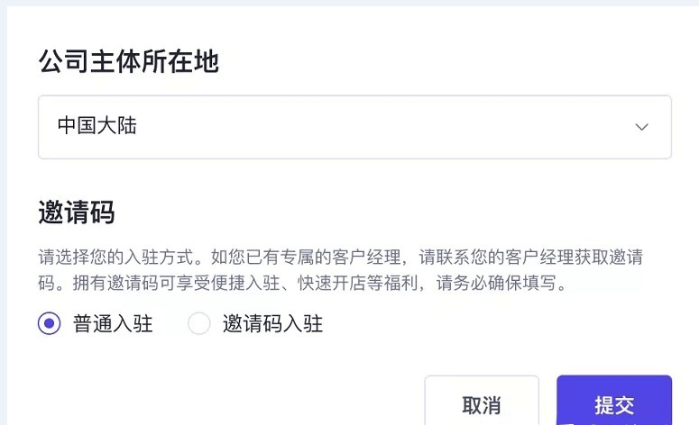 有邀请码的卖家联系自己的客户经理,邀请码会以邮件的形式发送。无邀请码的卖家选择普通入驻。
