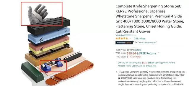 比如我们销售磨刀石,可以搭配手套、凿子,这样别的卖家想要跟卖你,必须和你的商品一模一样才可以的。显然,当跟卖的成本上升,就不容易被跟卖了。
