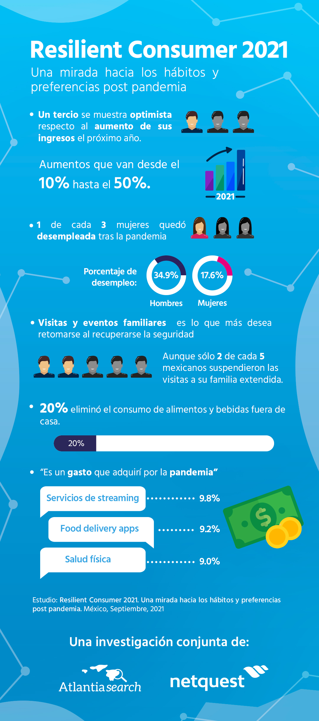 我们知道,墨西哥靠近美国,其墨西哥人的生活习惯和消费习惯与美国人相似,疫情前和疫情后墨西哥人们的消费习惯大有不同。最近由Atlantia Search和Netquest公司联合编写的 Resilient Consumer 2021 研究表明,由于COVID-19大流行导致的卫生限制,墨西哥社会的消费者行为正在发生重大变化。受访者中18%的墨西哥消费者改变了他们的主要职业,11%的人更换了公司,5%的人增加了一份额外的工作。而在娱乐消遣领域方面上,60%的受访者会因观看流行媒体内容购物,而因为流行媒体营销消费的占受访者的9.8%。