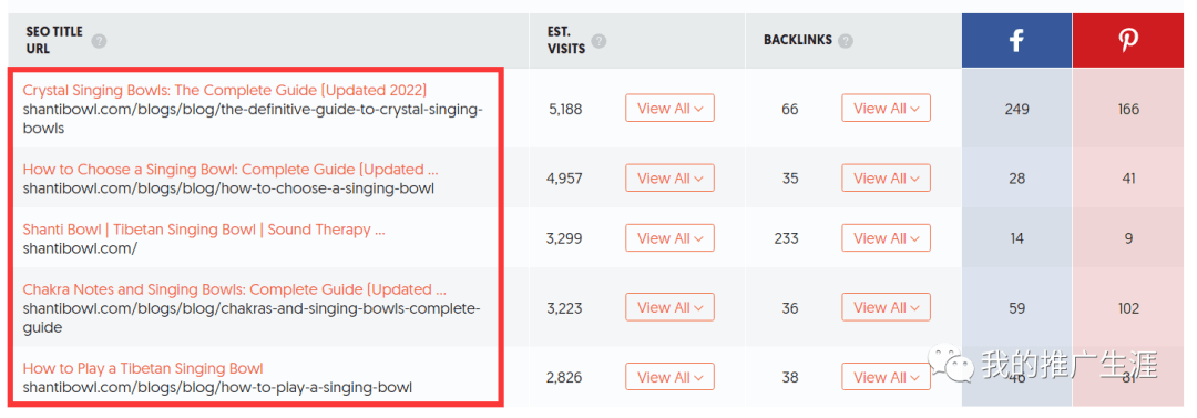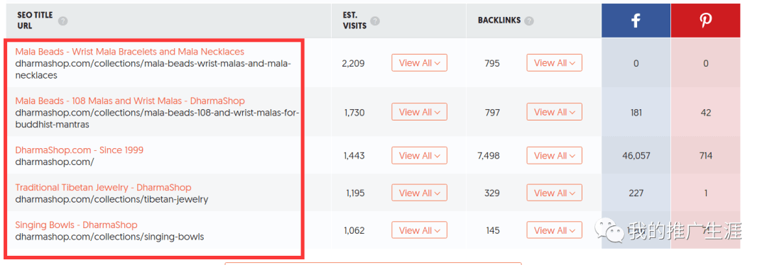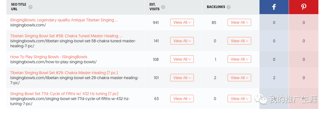 我们可以看到这个网站引流的主要页面,网站首页,几个产品页面,几个博客文章页面。