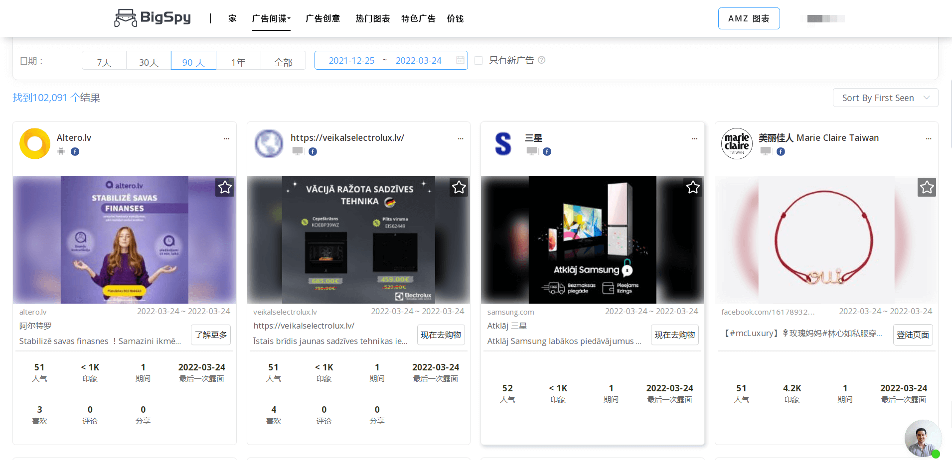 Bigspy(bigspy.com) 共有100,000,000多个广告,每小时更新100,000多个广告!我们可以帮助您从Facebook广告上的竞争对手的广告创意中获取灵感并购买广告!
