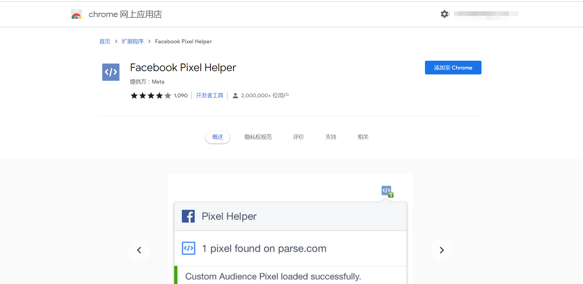 安装了Facebook插件之后, 你去访问其他网站就可以监测这个网站有无安装facebook pixel(像素代码),主要是为了收集官网访客数据做Facebook或者Instagram广告再营销。