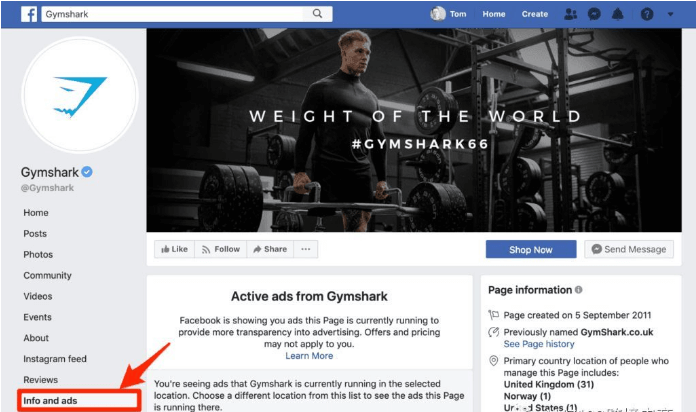 每个Facebook Page上都有Facebook Info and Ad功能(如下图所示)。该功能让用户可以看到Facebook上任一主页的更多信息,并且还可以查看页面在Facebook、Instagram、Messenger和Audience Network上运行的活跃广告。