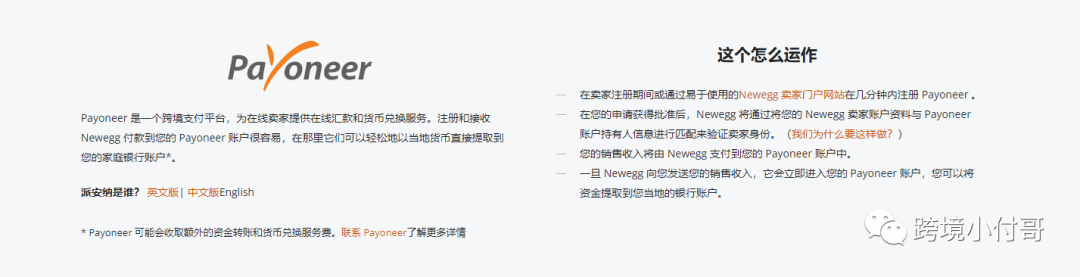 Payoneer 是一个跨境支付平台,为在线卖家提供在线汇款和货币兑换服务。注册和接收 Newegg 付款到您的 Payoneer 账户很容易,在那里它们可以轻松地以当地货币直接提取到您的家庭银行账户。
