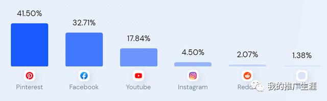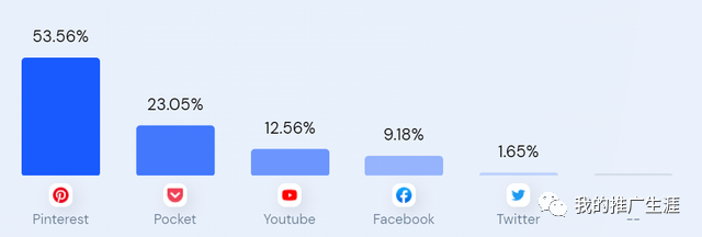 社交引流里面,pinterest占据了52.56%的比例,有意思的是pocket占据了23.05%,这个一般很少人用过。