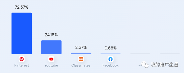社交流量里面pinterest和youtube占据了主要的入口,还有classmates,这个网站类似于国内的人人网,主要是美国的高校比较流行,每个月美国用户数千万,感兴趣的童鞋可以去了解下。