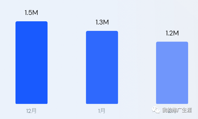 网站的流量去年12月份流量150万访客人次,1月份流量110万访客人次,2月份120万访客人次。