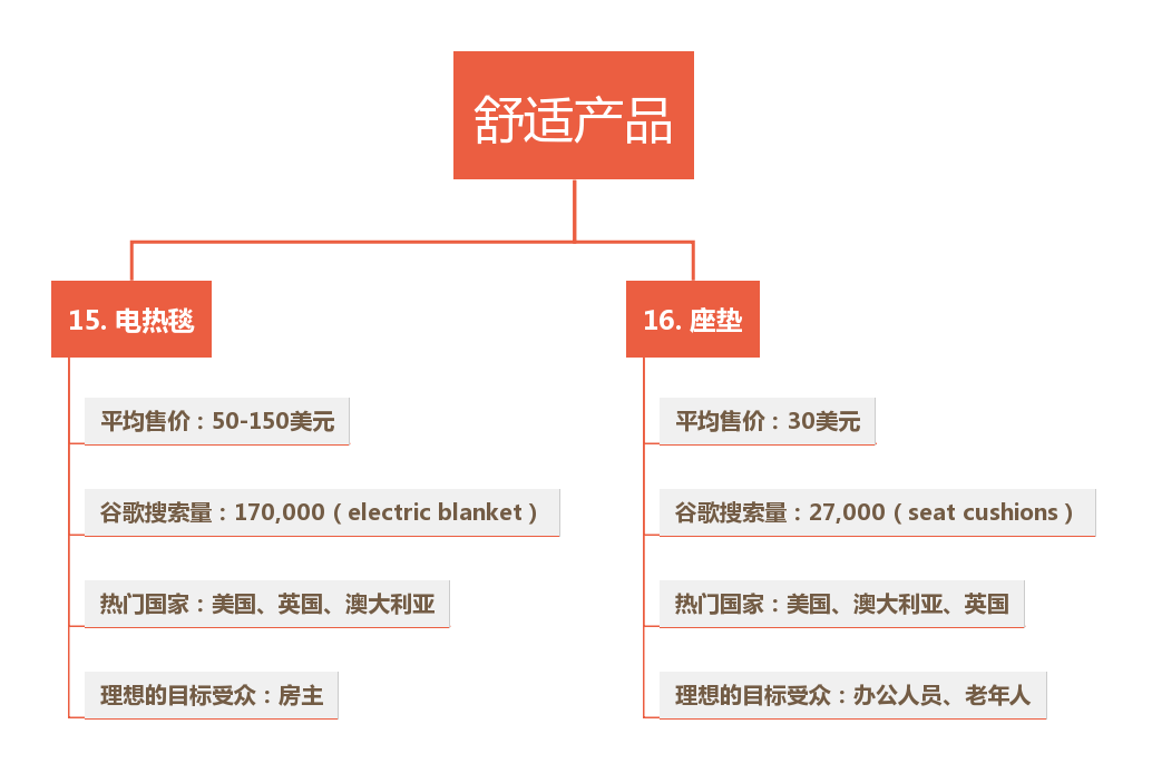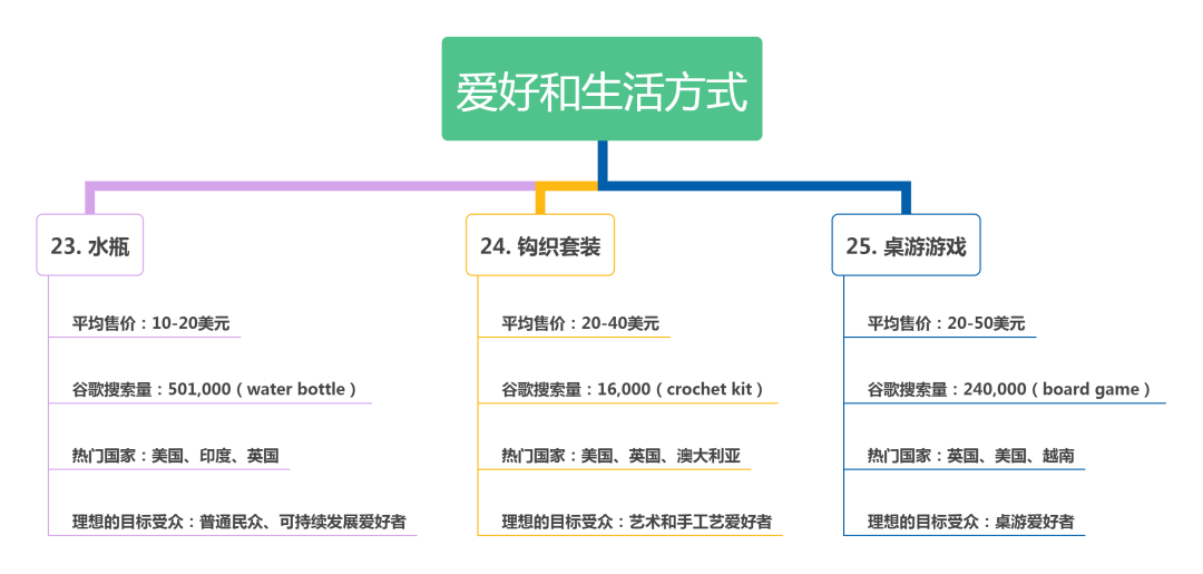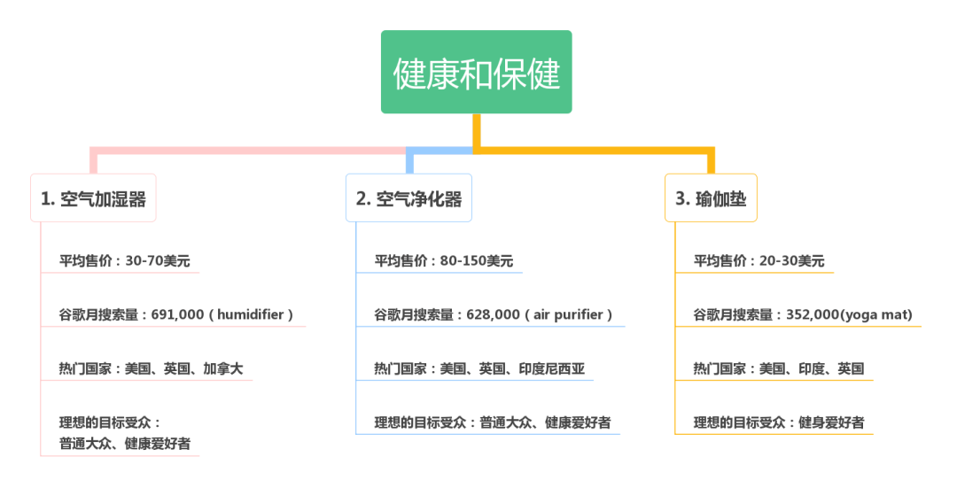 独立站选品建议 1. 选择accessory 相关的niche 产品 通常一个大件产品(比如电视或者电脑)的利润率在5% - 10%左右,但是它们的相关配件的利润率却高达100%甚至1000%。 为什么会这样? 我们买大件商品,通常会花费很长时间做调查,到处比价格,最后定下来用1000美金买一个电视。买电视的时候,自然要买一根HDMI线,价格在30美金的线,通常我们丝毫不用考虑就会放进购物车。 选择一个有大量配件的市场,客户对价格不是那么敏感的领域,更适合做独立站。 2. 选择发烧友市场的产品 比如,山地自行车项目的爱好者,肯定会花很多钱在户外能减少负重的配件上。 独木舟运动的爱好者,肯定对于和船相关的配件愿意掏腰包。老外基本夏天都会划船,很多家庭都有皮划艇或者独木舟,这个市场也挺大。 除此之外,如果你的产品有一定创新型,能够解决某个发烧友市场的一个特定问题,你的独立站会更加好做。 3. 注意产品价格区间 老外卖家通常觉得定价在100-200美金的产品价格是一个“sweet spot”,因为在这个价格区间内,利润足够大,同时,只要你的独立站店铺设计得不错,信息完整,绝大部分买家不需要花太多时间思考即可下单。 4. 选择老外难以买到的产品 要想做好独立站,最好卖那些老外平时生活中不容易找到的东西。 老外要买一个乐器相关的配件呢?国外没有那种超大的乐器相关连锁超市,这个时候,他们就会考虑在网上买了。 如果你的选品是老外们在平常的超市购物中(walmart、costco、home depot等大型连锁)比较难看到的,那独立站就成功了一大半。 5. 选择易耗品 易耗品意味着客户会重复购买,购买频次高。 在你确认了选品后,还需要做市场调查。 怎么确保你的选品是否有足够大的市场呢? 最好的办法就是用Google's Keyword Tool,把产品相关的关键词输入,查询一下每个月有多少搜索量。 如果相关关键词或者长尾关键词,每个月连3000个搜索量都没有,那就放弃这个产品吧! 2022年的28个趋势品类 按照不同的利基市场分类,我们提供了2022年的28个趋势性产品,并且为每个产品提供可操作的营销策略,其中的数据支持来源于谷歌趋势,给大家提供一些灵感。 一、健康和保健 2020年,全球健康和健身产业的价值为33.1亿美元。到2026年,这一数字预计将达到42.4亿美元。 近几年,健康和健身行业出现了持续增长。受疫情影响,人们更加关注他们的健康和保健。因此,健康和保健类产品在未来几年将保持利基市场。 二、时尚 预计到2025年,全球服装市场的收入将达到近2万亿美元。在2020年的COVID-19大流行期间,90%的消费者选择在线购买服装。 三、婴儿和儿童护理产品 2020年,婴儿护理产品的市场价值为673.5亿美元,预计到2026年将增加到887.2亿美元。 由于许多人在办公室远程工作,父母花更多的时间在家里陪孩子。因此,有助于平衡工作和家庭生活的物品已成为趋势性物品。 四、宠物用品 2020年,宠物护理市场的价值超过2323亿美元,预计到2027年将增长6.1%。宠物市场在世界各地都在增长,但美国以压倒性优势领先,特别是在宠物食品方面。 五、舒适产品 花更多时间在家里鼓励人们为自己创造一个更舒适的空间。据专家介绍,舒适的家具用品迅速成为装饰利基市场上最流行的产品之一。 六、家庭及户外电器 家用电器市场预计将从2020年的3081.1亿美元增长到2025年的4360.4亿美元。 疫情以来,更多的人呆在家里,避开人群。与此同时,购买电器仍然被认为是提升家庭生活质量的必要条件。因此,更多的人在网上购买家电,使其成为趋势性产品。 七、厨房电器 2019年,厨房电器市场的价值为2373亿美元,预计到2027年将增长到3777亿美元。 疫情以来,美国消费者在外面吃饭的人越来越少,在家里做饭的人越来越多。这一趋势预计将继续下去,因为10个消费者中大约有7个报告说他们打算继续在家里做饭。 八、爱好和生活方式 许多人都希望在户外或在安全的家中自娱自乐。掌握新的爱好或重拾旧的爱好正变得普遍。在爱好和生活方式类别中寻找可在线销售的趋势产品。 九、美容产品和配件 到2027年,全球美容或化妆品行业预计将达到4635亿美元。然而,经过多年的市场稳定增长,该行业在2020年因大流行病而缩减了8%。