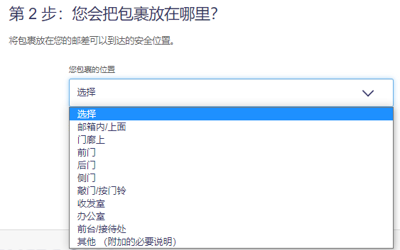 USPS提供多种选择,前门/后门/需按门铃等等... 如果您有其他要求,可以选择其他,进行备注。