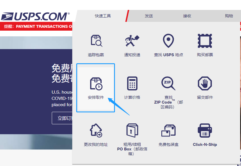 进入USPS官网,点击快速工具。选择安排取件。然后填写个人信息地址。