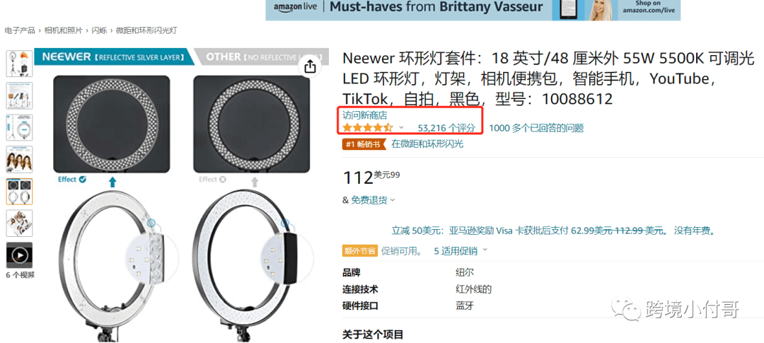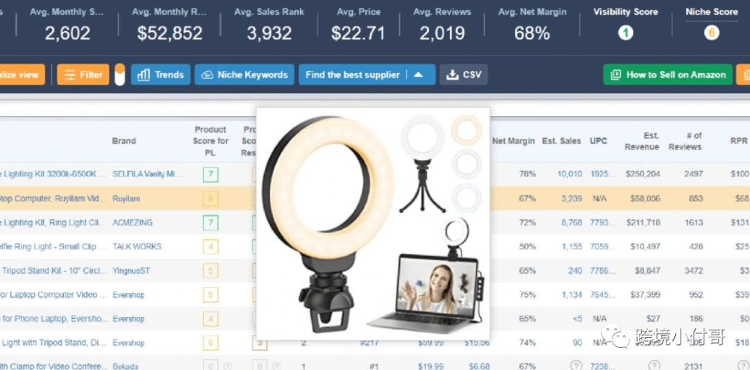 随着Tiktok为主的直播行业的风靡,个人自媒体形式的不断细分,此款LED环形灯的市场容量会不断的扩张,并且短时间内不会达到峰值。这款产品在亚马逊上的销售情况也是非常好的。